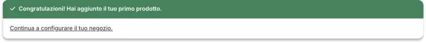 Dopo aver salvato, avrai aggiunto il tuo primo prodotto e potrai proseguire con la configurazione del negozio 🥳